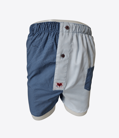 Caleçon Bleu marine avec petits motifs & bleu ciel uni