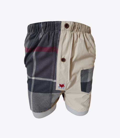 Caleçon rayure/carreaux gris et beige